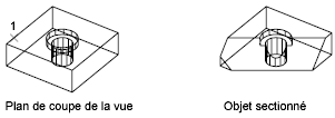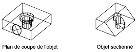 Les solides ainsi sectionnés gardent les propriétés de calque et de couleur de leurs solides initiaux. Toutefois, le solide ou la surface obtenus ne conservent pas l'historique des objets d'origine.