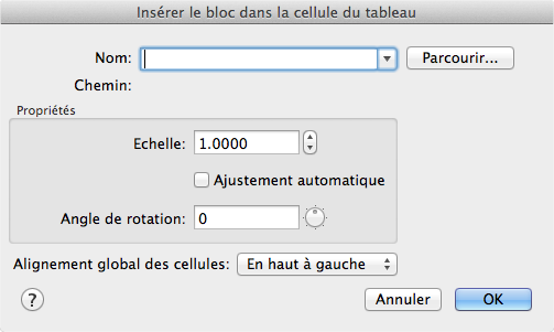 Détermine si la référence de bloc doit être mise à l'échelle en fonction de la cellule du tableau sélectionnée ou si la hauteur et la largeur de la cellule du tableau doivent être ajustées par rapport à la référence de bloc insérée.