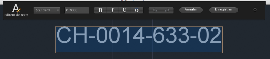 Si vous sélectionnez un attribut d'une seule ligne, ce bouton affiche l'éditeur de texte sur place sans la règle. Cliquez avec le bouton droit de la souris pour afficher les options. Si vous sélectionnez un attribut à lignes multiples, ce bouton affiche l'éditeur de texte sur place avec la règle.