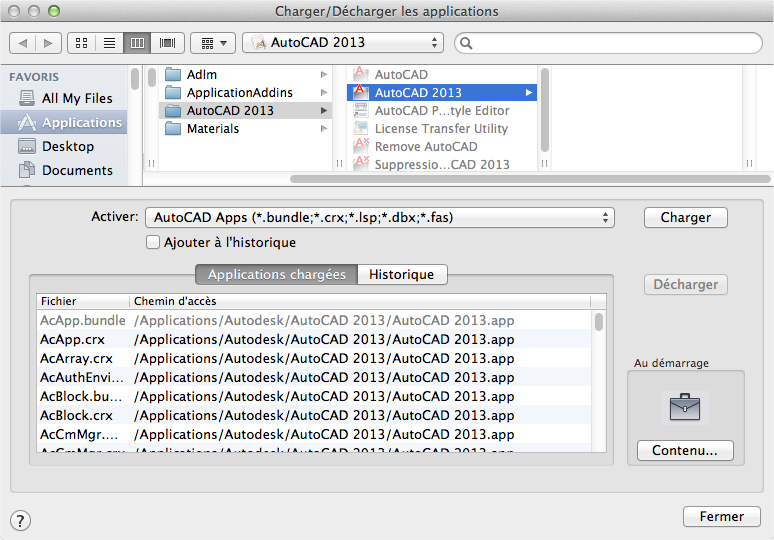 Contient une liste d'applications chargées à chacun des démarrages d'AutoCAD for Mac.