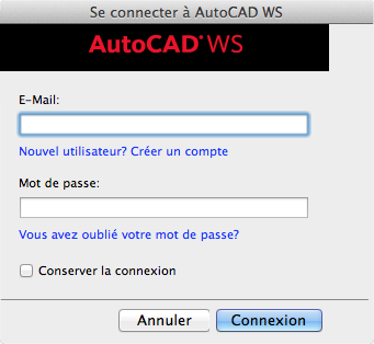 Les informations de compte que vous entrez sont conservées pour le prochain chargement d'un dessin vers AutoCAD WS.
