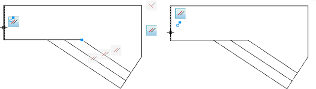 Le masquage des contraintes géométriques se révèle utile pour analyser une conception et filtrer l'affichage des contraintes géométriques. Par exemple, vous pouvez décider d'afficher uniquement les icônes des contraintes parallèles. Ensuite, vous pouvez choisir d'afficher uniquement les icônes des contraintes perpendiculaires.