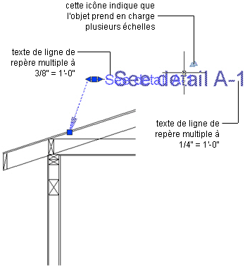 L'illustration suivante présente une ligne de repère multiple comportant deux échelles d'objet.