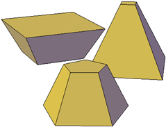 - Créez un tronc de pyramide. Utilisez l'option Rayon supérieur pour créer un tronc s'étendant vers une face plane. La face tronquée est parallèle à la base et possède le même nombre de côtés.