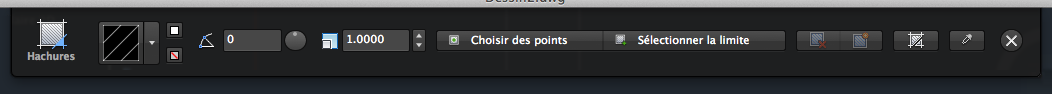 Lorsque plusieurs hachures ou remplissages de types différents sont sélectionnés dans un dessin, certaines options du viseur Hachures sont désactivées.