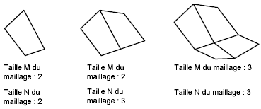 Lorsque vous créez le maillage, vous spécifiez la taille du maillage dans les directions M et N. Le nombre total de sommets que vous spécifiez pour le maillage est égal au produit des valeurs M et N.
