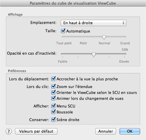 Détermine les propriétés d'affichage de l'outil ViewCube.