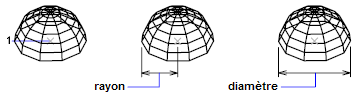Spécifiez le rayon du dôme ou [Diamètre]: Spécifiez une distance ou tapez d