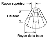 Définit le sommet du cône par son rayon. La valeur 0 crée un cône. Une valeur supérieure à 0 crée un cône tronqué.