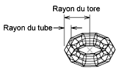Le rayon du tore est mesuré du centre du tore à son arête extérieure (et non au centre du tube).