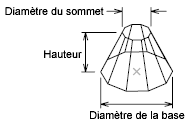 Définit la base du cône par son diamètre.