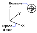 Affiche une boussole et une représentation des axes, que vous utilisez pour définir une direction de visée dans la fenêtre.
