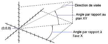 Le premier angle est indiqué par rapport à l'axe X dans le plan XY.