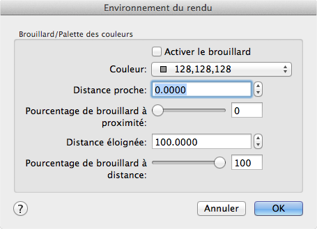 Active et désactive le brouillard sans modifier les autres paramètres de la boîte de dialogue.