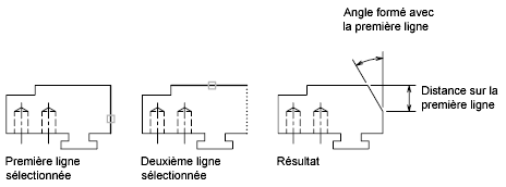 Il est possible de chanfreiner deux objets en indiquant le point à partir duquel la ligne de chanfrein commence sur le premier objet et l'angle décrit par rapport à cet objet.