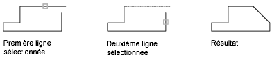 Si les deux objets chanfreinés se trouvent sur le même calque, la ligne de chanfrein appartient à ce calque. Dans les autres cas, la ligne de chanfrein se trouve sur le calque courant. Les paramètres du calque s'appliquent à la couleur et au type de ligne du raccord.