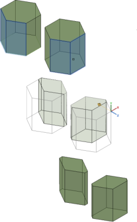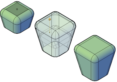 Vous pouvez utiliser la commande APPTIRER pour décaler simultanément des faces et des surfaces planes et non planes sur des objets identiques ou distincts. Tous les éléments du jeu de sélection doivent être du même type que le premier élément (une face ou une surface délimitée).