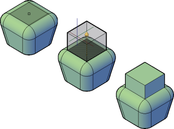 Utilisez cette méthode si vous souhaitez que l'extrusion n'ait pas d'incidence sur les faces et les raccords adjacents. Avec cette méthode, l'extrusion est conservée dans l'objet d'origine. Si vous préférez créer un objet distinct, utilisez la commande EXTRUSION.