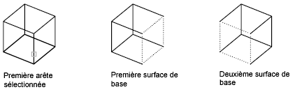 Si vous sélectionnez une arête d'un solide 3D, vous devez indiquer celle des deux surfaces adjacentes qui servira de base.