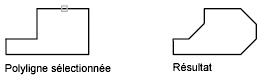 Si la polyligne renferme des segments trop courts par rapport à la distance du chanfrein, ces segments ne seront pas biseautés.