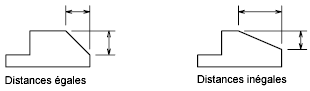 Définit les écarts de chanfrein en utilisant une distance pour la première ligne et un angle pour la seconde.
