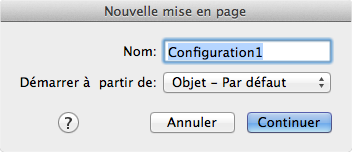 Indique la mise en page à utiliser comme point de départ pour la nouvelle mise en page. Lorsque vous cliquez sur Continuer, la boîte de dialogue Mise en page s'affiche, présentant les paramètres de la mise en page sélectionnée que, au besoin, vous pouvez modifier.