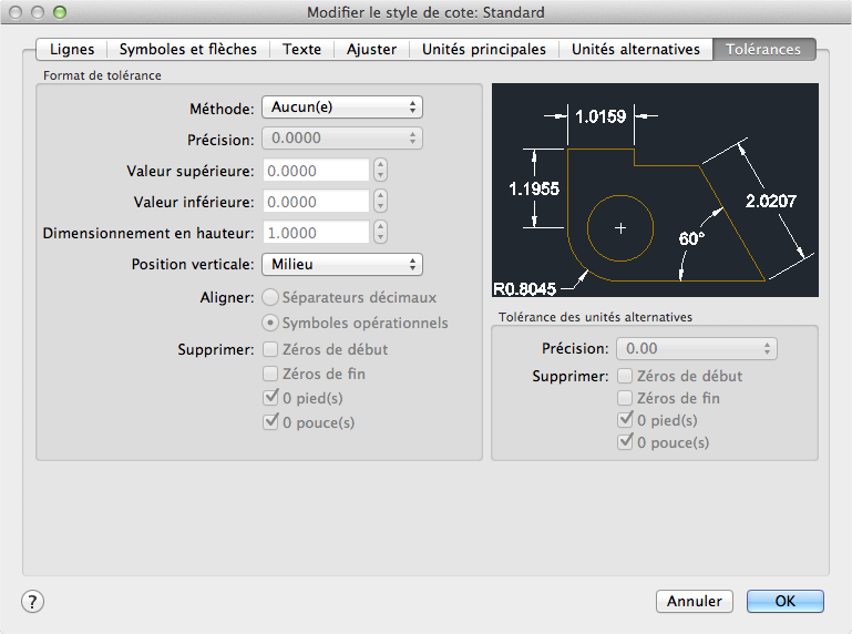 Spécifie l'affichage et le format des tolérances du texte de cote.