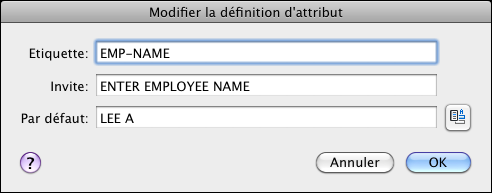 Indique l'étiquette qui identifie l'attribut dans le dessin. L'étiquette peut contenir des points d'exclamation (!). Le changement de casse n'est pas immédiatement affiché dans le champ de l'étiquette.