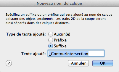Ajoute un préfixe ou un suffixe personnalisé aux noms de calque, facilitant l'organisation des composants d'un bloc de coupe.