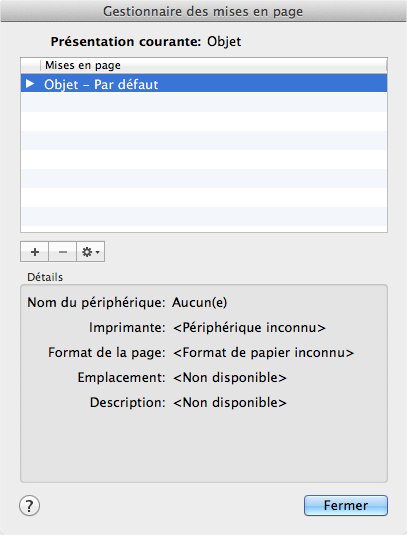 Affiche le type du périphérique de sortie spécifié dans la mise en page sélectionnée.
