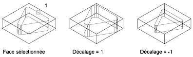 Décale les faces selon un intervalle régulier en fonction de la distance indiquée ou du point spécifié. Une valeur positive augmente la taille ou le volume du solide. Une valeur négative diminue la taille ou le volume du solide.