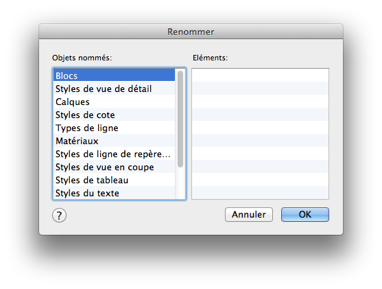 Modifie les noms affectés aux objets nommés tels que les calques et les styles de cote.