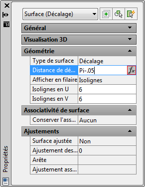 Les contraintes dimensionnelles sont des expressions définies par l'utilisateur ; elles sont appliquées dans la palette Propriétés de cette surface.