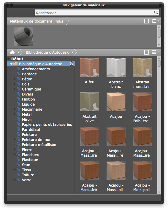 Le navigateur de matériaux permet de parcourir et gérer vos matériaux.