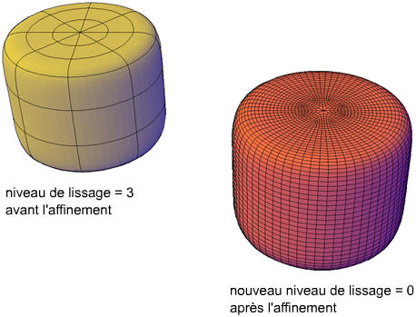 Vous pouvez affiner tout maillage dont le niveau de lissage est de 1 ou plus.