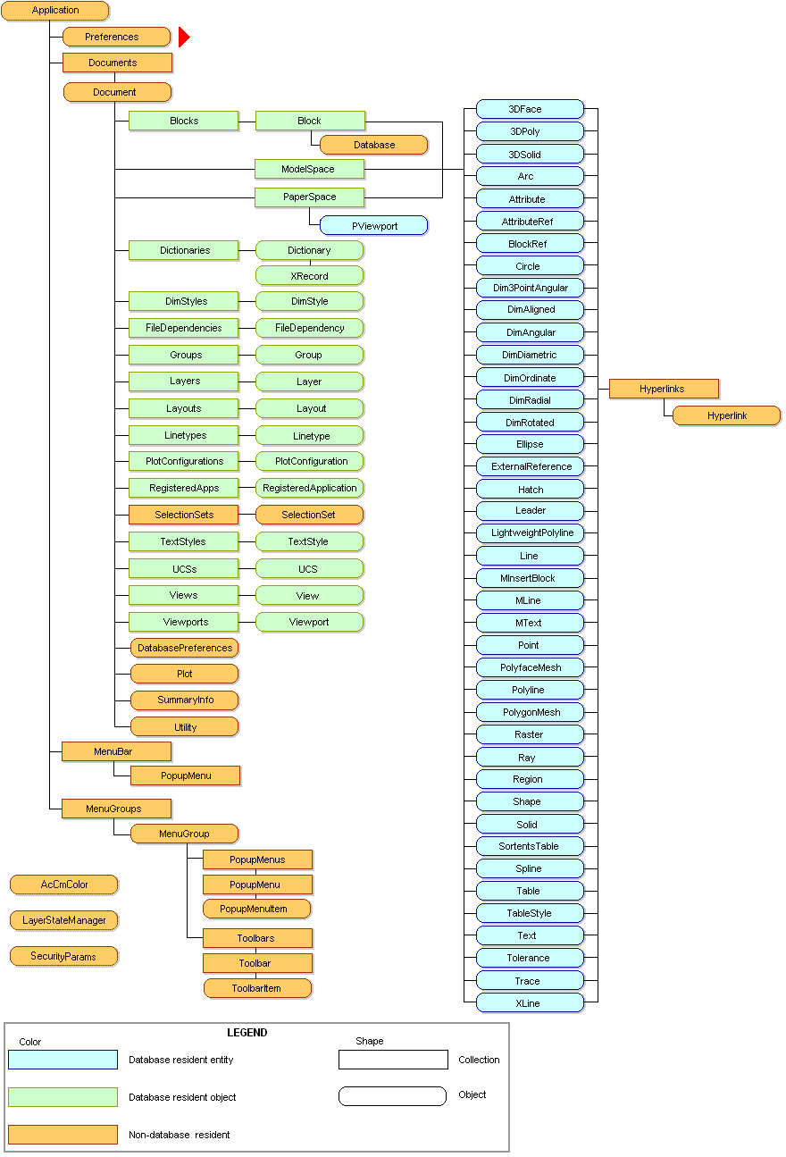 AutoCAD objects are structured in a hierarchical fashion, with the Application object at the root.