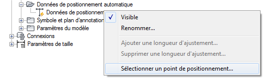 Option Sélectionner un point de placement dans le menu contextuel Données de positionnement