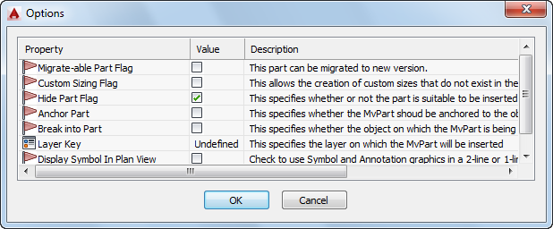 Pour obtenir une description de ces paramètres, reportez-vous à la rubrique Comportements à l'insertion d'un composant paramétrique.