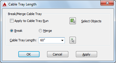 | Application de la longueur à l'ensemble de la conduite | Sélectionnez Appliquer à la conduite de chemin de câbles ou Appliquer à la conduite de tube IRO. |
