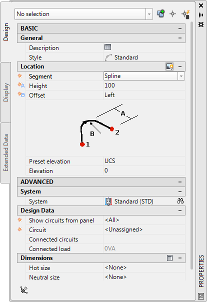 Lorsque vous utilisez la poignée d'ajout (+) pour lancer une opération d'ajout de fil, le logiciel utilise le jeu de propriétés de la connexion de l'appareil sélectionné. Par exemple, le type de système de connexion de l'appareil sélectionné sera utilisé pour le système. Si le type de système n'est pas défini, l'opération d'ajout de fil recourt au dernier système utilisé dans le dessin ou la session en tant que type de système. La palette des propriétés filtre la liste des systèmes pour afficher uniquement les systèmes correspondant à la connexion.