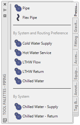 Un outil d'objet insère un objet, tel qu'une gaine ou un tuyau, dans un dessin. Lorsque vous ajoutez un objet à l'aide d'un outil d'objet spécifique, ses paramètres sont définis dans ce dernier, ce qui facilite le processus de conception et permet de conserver la cohérence entre vos différents dessins de projet.