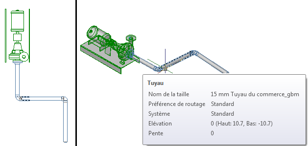 Conseil : Si vous dessinez un tuyau dans la direction du flux, choisissez Mâle dans femelle (par défaut). Si vous dessinez dans la direction opposée du flux, choisissez Femelle vers mâle.