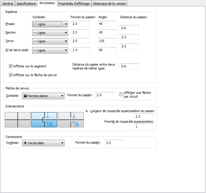 - Dans la section Intersections, sélectionnez le style des intersections de fils.