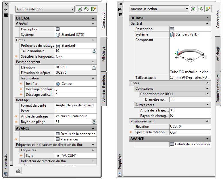 .Utilisez la palette Propriétés du tube IRO pour les paramètres de tube IRO et de raccord.