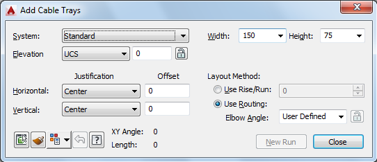 Utilisez la boîte de dialogue Ajouter des chemins de câbles pour définir les paramètres de chemins de câbles et la boîte de dialogue Ajouter des raccords de chemin de câbles pour les raccords.