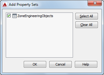 4. Dans la boîte de dialogue Ajouter des jeux de propriétés, sélectionnez ObjetsZoneIngénierie, puis cliquez sur OK.