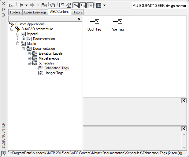 - Dans la palette DesignCenter, cliquez sur l'onglet Contenu AEC.