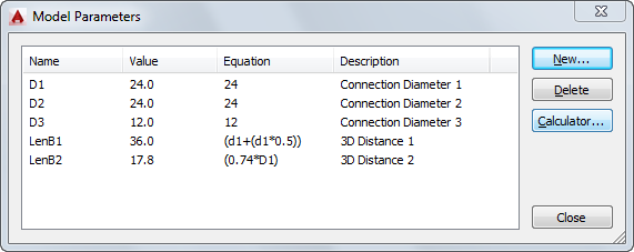 - Cliquez deux fois sur la valeur Equation associée à LenB1, puis tapez l'équation équivalant au diamètre de la conduite plus un demi diamètre de la conduite (D1 + ( D1 * 0.5)).