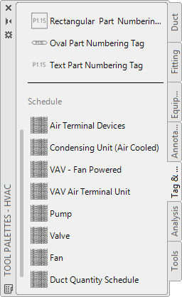 Les outils de repères de composants permettent de numéroter les différentes étiquettes séparément ou sous forme de séquence. Les composants de même type peuvent être associés au même numéro. Les repères de composants peuvent contenir des numéros ou du texte et peuvent s'utiliser avec tous les objets MEP. En revanche, les outils de nomenclature de la palette d'outils Etiquette et nomenclature s'utilisent uniquement avec les systèmes de gaines et de tuyauterie. Pour plus d'informations, reportez-vous à la rubrique Utilisation des repères de composants et des nomenclatures.
