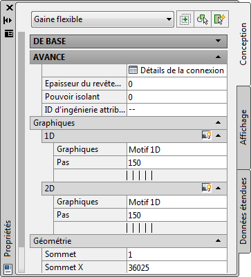 Propriétés avancées (propriétés de tuyau flexible incluses)